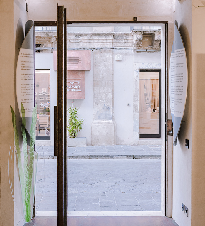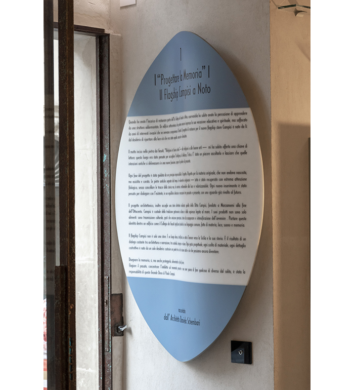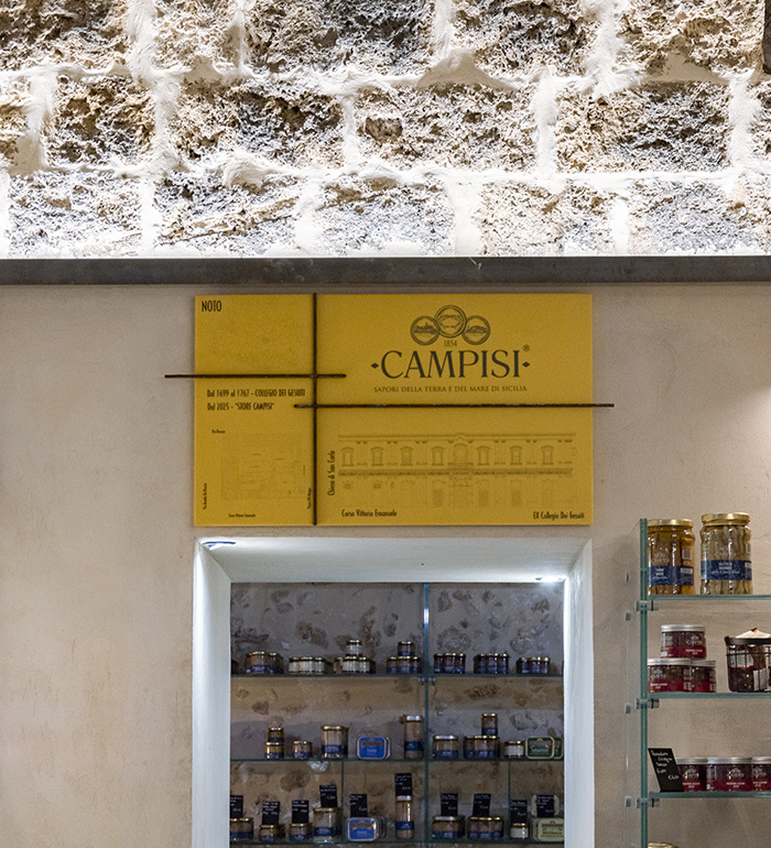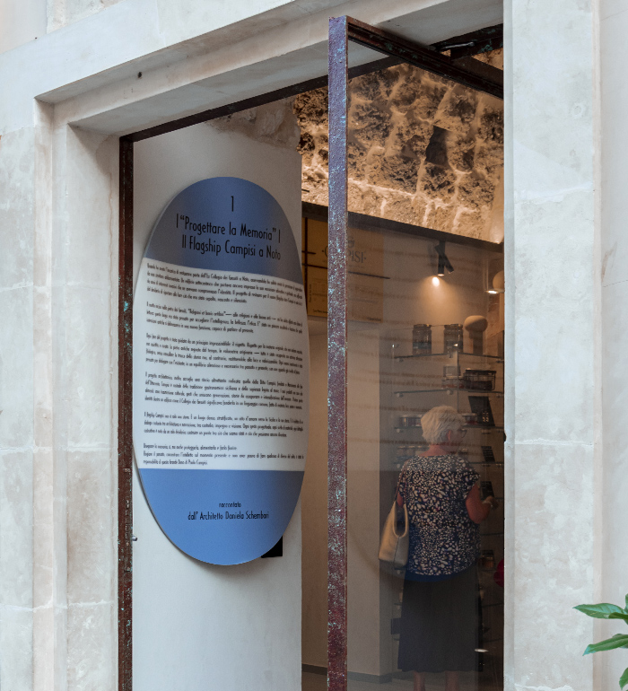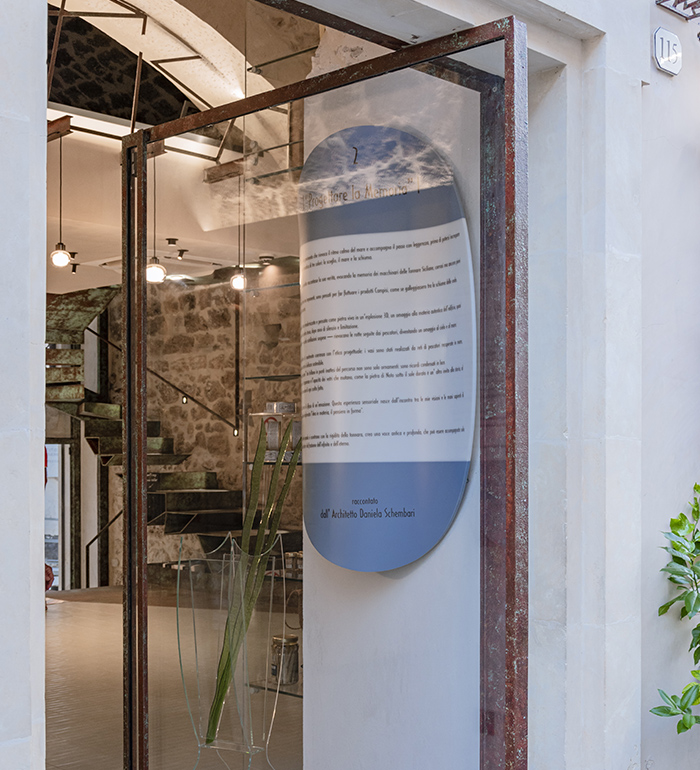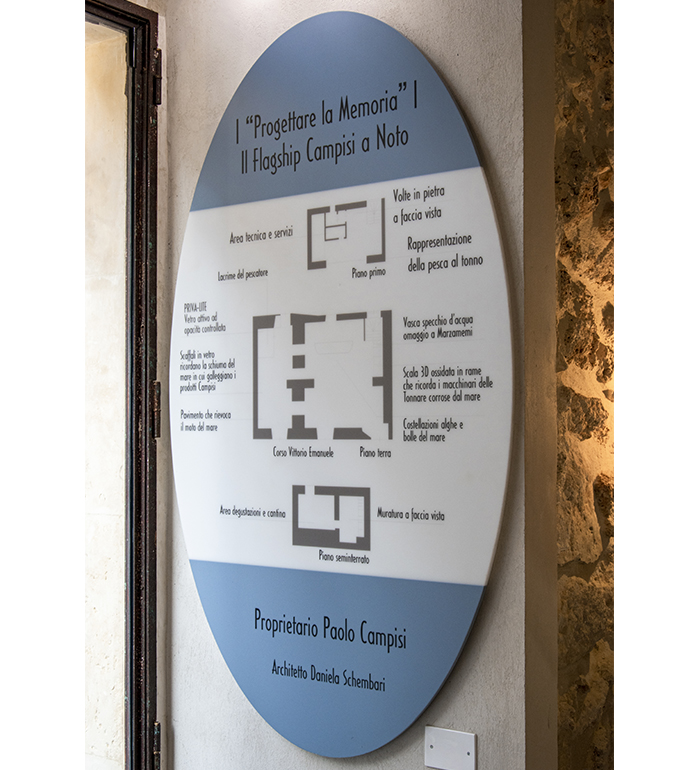 The final piece, a black thermoformed plaque set into the rock wall of the boutique, takes the shape of a stylized anchor — a symbol of the bond between sea and land, stability and depth, memory and contemporaneity.