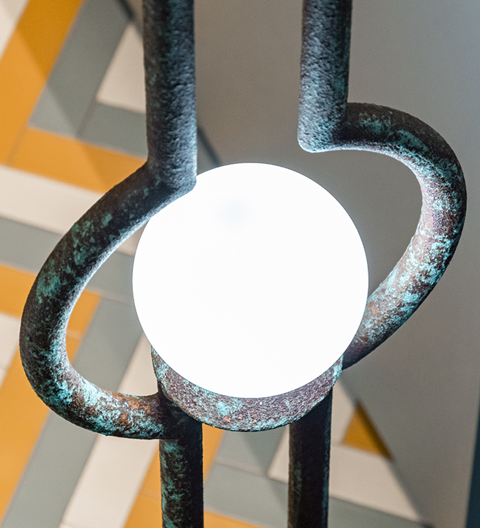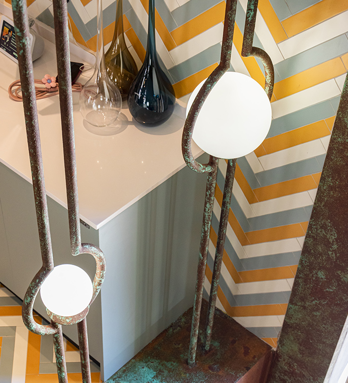 This lamp was conceived as a unique design piece, created to integrate seamlessly with the boutique’s space and to dialogue with the artistic staircase, becoming not only a source of light, but also an architectural feature and a creative balustrade for the stairs.