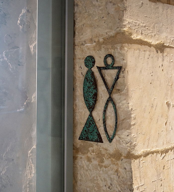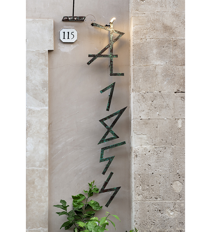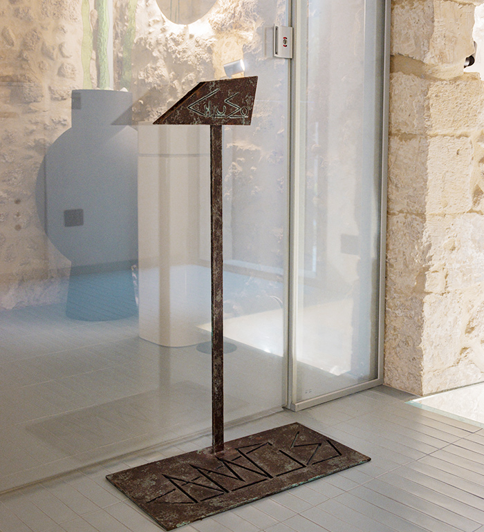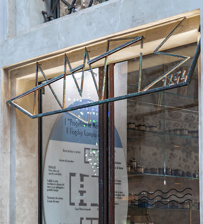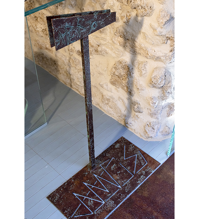 The materials and finishes follow the same artistic philosophy as the staircase: treated through artistic paint techniques and oxidation of copper and corten surfaces, with patinas that evoke time, the sea, and the historic memory of the old tuna fisheries.
